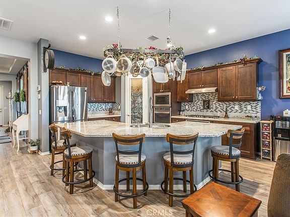 Welcome to your FULLY PAID SOLAR dream home in the Four Seasons Beaumont 55+ community! This exceptional 2019 build offers a unique blend of elegance, comfort, and modern upgrades that make it a true gem within this exclusive community. As you approach the property, you'll immediately notice the eye-catching curb appeal with turf/rock landscaping, an expanded driveway with stamped concrete, custom lit stone columns, custom matching porch and security metal gates, and a brand new glass front door, setting the tone for what lies beyond. Upon entering, you'll be greeted by a spacious hallway enriched with elegant wainscoting and fresh paint. This inviting open-concept layout is designed to maximize both space and natural light. The heart of this home is the kitchen, a true chef's delight. It features a huge kitchen island, perfect for meal prep and casual dining, two ovens, and decorative backsplash all adorned with beautiful granite countertops. This space seamlessly flows into the dining and living areas, making it ideal for entertaining guests or enjoying cozy evenings with family. For those who appreciate privacy and a dedicated workspace, the home boasts striking barn-style doors leading to the office, offering a quiet retreat for productivity. The master bath also features these stunning doors, adding a touch of rustic charm to the luxurious master suite. In addition, this unique home features plantation shutters, upgraded laminate flooring, and delightful ceiling fans and chandeliers you'll absolutely love. One of the many highlights of this property is the outdoor living area. Step outside to discover a meticulously designed backyard paradise with a variety of fruit trees. Entertain friends and family in they backyard while soaking in the breathtaking views. This Four Seasons Beaumont home is not just a house; it's a lifestyle. The community offers a range of amenities, including 3 clubhouses, a Bistro, movie theater, billiards room, library, card room, fitness centers, tennis courts, pickle-ball, basketball courts, pools, spas, and social activities, ensuring that you'll always have something enjoyable to do. Don't miss the opportunity to make this meticulously upgraded home yours. Schedule a viewing and experience the beauty and tranquility of this remarkable property in person. With fully paid Solar and a 3 car tandem garage for additional storage space, your dream home awaits!