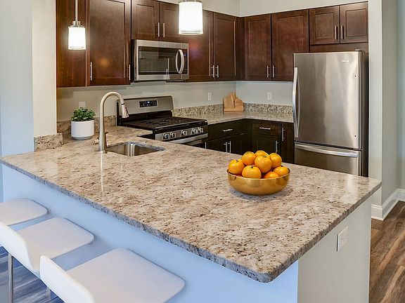 Welcome home to this beautiful two bedroom and 2 bath apartment with granite countertops and dark wood kitchen cabinets , walk-in closets, beautiful flooring, in unit washer and dryer!