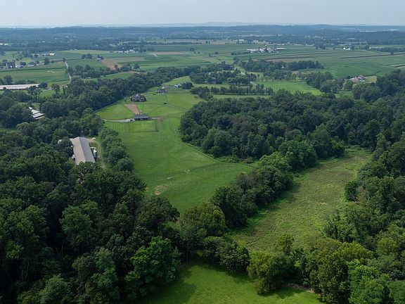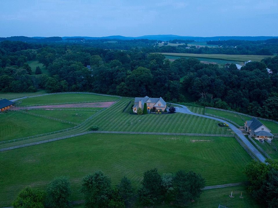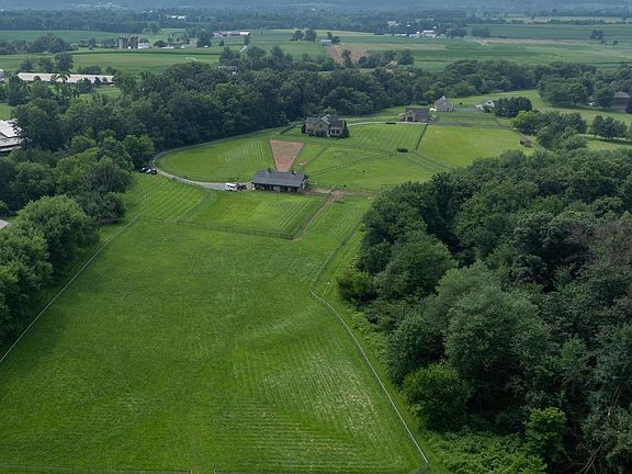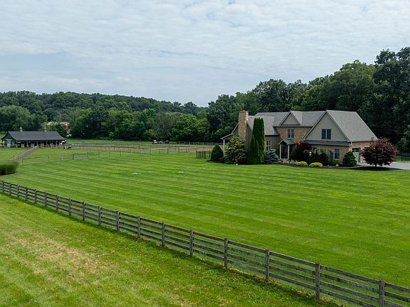 Welcome to 380 Meadow Lane, a stunning 31.47± acre estate nestled in the peaceful countryside between Elizabethtown and Hershey, PA. This desirable property offers a tranquil blend of fenced pastures, wooded areas, open field, and lawn, all surrounding a thoughtfully designed custom home w/open floor plan, a large center isle barn, a charming carriage barn, and run in shed. A long, tree-lined driveway provides a graceful approach to the private setting, revealing breathtaking views of the rolling countryside. The covered front door invites you into a welcoming two-story open foyer w/beautiful staircase. Just off the foyer, you enter a spacious open living area comprising the great room, kitchen, and dining space - all featuring wide plank wood floors, creating a memorable space for entertaining. The great room serves as the centerpiece of the home, showcasing a soaring cathedral ceiling w/exposed beams, an impressive floor-to-ceiling stone propane fireplace with a wood mantel flanked by built-ins on both sides, and a door opens to a covered porch where you can relax while enjoying the views and watching for deer & abundant wildlife. The large kitchen features a breakfast bar w/wood counter, pendant lighting, and seating for six, an island with butcher block counter, recessed lighting, multiple wall cabinets w/glass doors, desk space, large pull-out drawers, tile counter & backsplash, wine rack, and a farmhouse sink overlooking the family room. Stainless steel appliances include a GE Monogram refrigerator, a 6-burner propane range w/electric oven, and Thermador range hood. The adjacent dining area is lined with windows, providing majestic views & plenty of space for large gatherings. The family room features a stone floor and abundant natural light, creating a cozy spot to unwind. A powder room with a pedestal sink is thoughtfully located on the first flr. The mudroom/laundry area offers access to both the garage and fenced backyard and includes tile flooring, a pet bath, washer & dryer, laundry sink, and built-ins with a counter and bench seat. Both the first floor and primary bath have comfortable radiant floor heating. The rear patio provides an ideal space for outdoor entertaining. The spacious primary suite boasts a vaulted ceiling, propane fireplace, sitting area, large arched window overlooking the pastures, a large walk-in closet with built-ins, and a primary bath with heated tile floor, tile shower, double sink vanity, and whirlpool tub. Just outside the primary suite is an office loft overlooking the great room and plus an additional loft area w/built-ins. Two additional large bedrooms offer plentiful closet space. The oversized two-car garage features large carriage house-style doors approximately 9’11” wide by 7’11” high. The carriage barn includes an overhead door to a garage space, a stable, overhangs on both sides, and a hayloft. The large center isle barn measures 36’ W x 60’ L, w/overhangs on both sides, featuring a heated & cooled tack room w/bathroom, two horse stalls, and space for five additional stalls if portable fencing is used. The property is enrolled in Act 319 Clean & Green. This location offers a rural setting while being centrally located to Lancaster, Hershey, & Harrisburg, and is approx. five minutes from the Rt. 283 Elizabethtown/Hershey exit. It’s about 20 minutes to Harrisburg International Airport, 1¾ hours to Philadelphia International Airport, and 2 hours to Baltimore International Airport. This may be a once-in-a-lifetime opportunity to acquire this rare property! Note: Many mapping programs are not reflecting the property lines correctly – see lot plan w/listing documents for property lines.