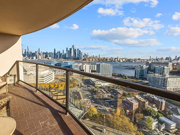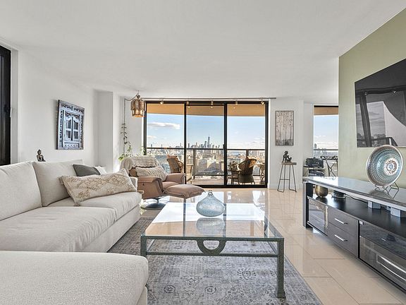 Welcome to your exceptionally bright and airy home perched high above the Hudson River in this beautifully upgraded corner unit, one of Troy Towers’ most sought-after and spacious layouts offering direct, unobstructed NYC skyline views from every window. A large open terrace extends your living experience and sliding glass doors bring sweeping panoramic views from Midtown to Downtown and beyond right into your living room all year round, from dramatic dawns to magical City twilight. This luminous home features white porcelain tile flooring, oversized picture windows, and an open living/dining space that’s ideal for entertaining against a spectacular Manhattan backdrop.