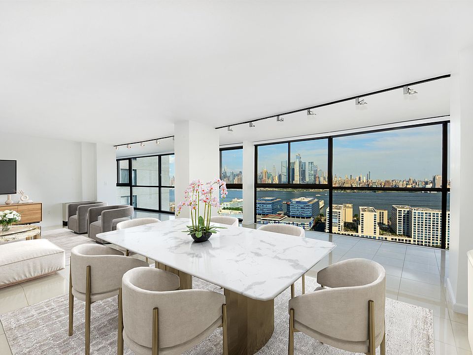 Spectacular 2 Bedroom, 2 Bath residence spanning almost 1700 square feet with floor-to-ceiling windows and stunning direct NYC views, Hudson River and Hoboken.