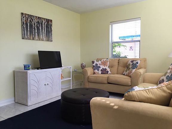 Enjoy the beach life! 2 blocks from the beach! Restaurants, bars, Post Office, library and shopping are located nearby. This unit has a screened porch that backs to the tropical BBQ area. Very clean with updated bathroom. Also has onsite laundry facility.