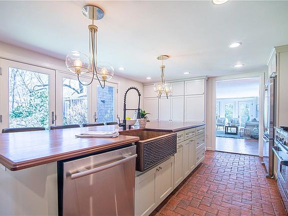 Historic 1920's Shingle Style Carriage House. This home still retains many original details, yet has been carefully renovated for today's lifestyle. Cooks kitchen with top of the line appliances and spacious counter for dining and preparing meals, with sunny breakfast nook adjoining. Comfortable living room has original granite fireplace and huge glass patio doors lead out to just over 2.5 acres of lovely garden areas plus a stunning bluestone patio with outdoor built in gas grill completes this outdoor living and entertaining space. A 1st floor master suite with a walk in closet-dressing room that connects to the master bathroom, with soaking tub, spacious marble shower and double vanity. Master bed has huge glass doors to bring the outdoors in. Truly a luxurious space. There is an additional bedroom on the first floor and full bathroom. Upstairs is another entire suite with living room, lux bathroom and bedroom spaces, with ample storage. Across the hallway is an additional sunny bedroom. Mechanical upgrades include major HVAC improvements, providing flexible climate control options. A new boiler supplies heat across six zones, and nearly all living spaces are equipped with energy efficient mini split AC and heat pump. A perfect home for those who entertain, cook and love the outdoors. Only a 10 minute drive to Town Beach for summer living at it's best. Close to Wakefield center.