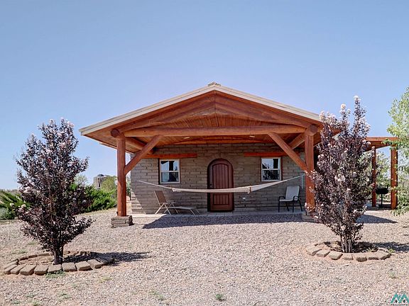 This one-of-a-kind Adobe home is less than 10 years old and is beautifully built. It is a one-bedroom, one-bath home that is handicapped accessible, with outstanding views of the Florida Mountains. This home looks like a cabin you would see in Ruidoso. The metal roof is enhanced by pine beams. The interior ceiling is pine and the walls are the natural color of adobe. There is a mud room-laundry room also. The hot tub is included, it is just a few years old and is handicapped accessible. To one side of the house is a shop with running water and electricity. The carport is large and can handle an RV. This is also a storage container next to the shop. There is a fire pit and an outside patio, with an approved outhouse On the other acre is a setup for an RV, mobile, or another house. It has its own well, septic, and electric. Call for an appointment today to see this fantastic home. Most of the furniture and appliances will convey