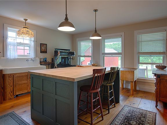 Outdoors, a stone patio offers the perfect spot for al fresco dining, while raised garden beds let you grow your own produce just steps from the kitchen—for a true farm-to-table experience. The professionally renovated heirloom apple orchard adds to the property’s agricultural appeal. Cool off in the swimming pond on hot days, or follow walking trails that meander through meadows and wooded areas, past native plants and along the banks of Phinney’s Creek, which runs directly through the property.