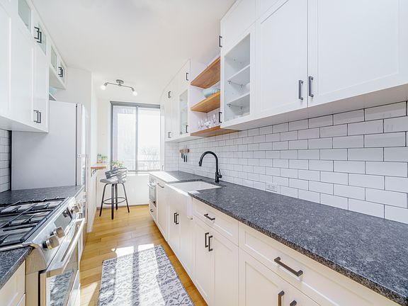 You will certainly enjoy cooking in this fully renovated kitchen! This bright room is complete with high-end appliances, ample storage and counter space, and features a breakfast bar right at the window!