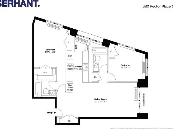 There are two spacious bedrooms, each with Statue of Liberty views! The primary bedroom easily accommodates a king sized bed and provides plenty of space for all your additional furnishings- even a dedicated area to work from home! There is a generous amount of storage, including a walk-in closet. The secondary corner bedroom has incredible natural light and comfortably fits a queen bed. Each room has custom window treatments installed.