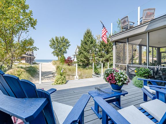 Rarely available in this charming vintage neighborhood with brick streets and gas light posts is a one owner custom built home with 53 ft. of Lake Michigan frontage with no bluff and littoral beach rights. Built in 2006 this home has 5 bedrooms and 4 full baths on the upper level, 1/2 bath on the main level and 1 bedroom and full bath in the lower level walkout. There are 2506 sq. ft. finished on the main and upper level with an additional 978 sq. ft. finished in the lower level walkout. The Great Room offers beautiful lake views as do several decks and a large screened porch. Home has a formal dining room, gas log fireplace in the den, kitchen with high end appliances and open concept design, main floor laundry and oversized 3 car garage. This home with it's private beach rights is sited on a private low maintenance .868 acre lot. This home is not within any critical dunes or high risk erosion area. Located in the highly respected St. Joseph School district this prestigious neighborhood is minutes to downtown St. Joseph with its numerous shops and restaurants, Curious Kids Museum, Carousel, Whirlpool Interactive fountain, Krasl Art Center, plus the Jack Nicklaus Signature Golf course at Harbor Shores, and the Benton Harbor Arts District. Ideal as a primary residence or a second home for gathering family and friends you will always love the fantastic Lake Michigan sunsets!