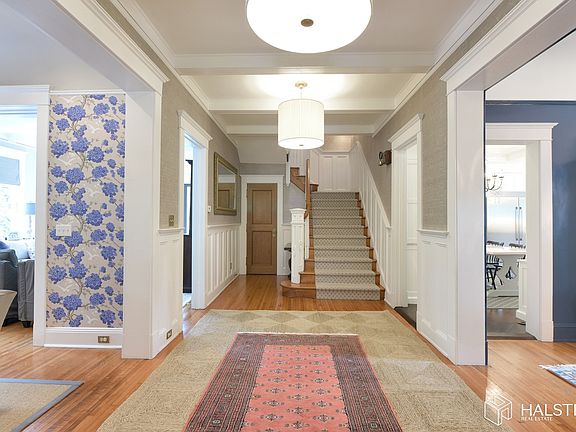 Spectacular 6 bedroom, 4.5 bathroom colonial located on prestigious Ridgewood Avenue boasts a magnificent wrap around porch and brand new deck with built-in barbecue overlooking meticulously maintained yard & in-ground pool. The interior has been beautifully renovated & features a large, eat-in-kitchen w/ custom cabinetry, S/S appliances & marble countertops. A great first floor flow is highlighted by a family room w/10 foot full open glass door onto the deck. The 2nd Fl has MBR suite w/ walk-in closet, full bathroom w/steam shower & double vanity, 3 BRs & brand new hall bath. The 3rd Fl has 2 add'l BRs, full bath & a 2nd family room. Finished basement w/laundry rm, rec room, exercise room, full bath and access to yard. 3 zone CAC! Top schools & jitney to NYC train!