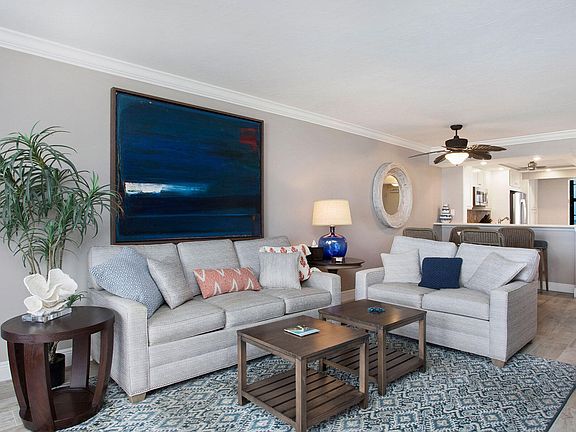 One of the nicest condos in South Seas Tower 3 offered for sale. COMPLETELY RENOVATED in 2016 down to the studs with an elegant flair, is this two bedroom, two bathroom unit located along the shores of Tigertail Beach on beautiful Marco Island. This top (19th) floor condo has panoramic views of the island, beach, pool, and Gulf. Interior features include Quartz counter tops, all wood Amish-made cabinetry, GE monogram Stainless steel appliances, Kohler plumbing fixtures and a porcelain large sink. Furnished with Ethan Allen furniture, impact windows and sliders, and plank tile flooring throughout. Attention to detail is seen everywhere in this condo.