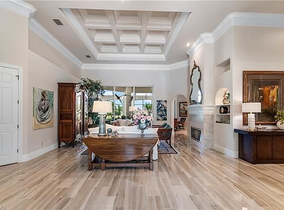 If you don't love this kitchen, you are the only one! An estate home on an extra large lot has much to boast about, from the views, the open floor plan, 2 large crystal chandeliers in foyer and formal dining, coffer ceilings and of course, the kitchen! Indoor and outdoor wet bars, porcelain floors and plantation shutters throughout, new roof, newer AC's, 2 offices/dens, custom closets, his and hers master bath with separate water closets and a bidet. A gated community, manned 24/7, located close to anything you will need, and a highly rated school district.