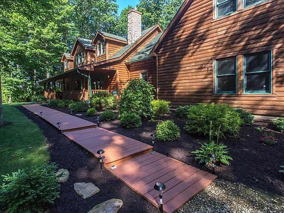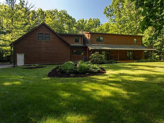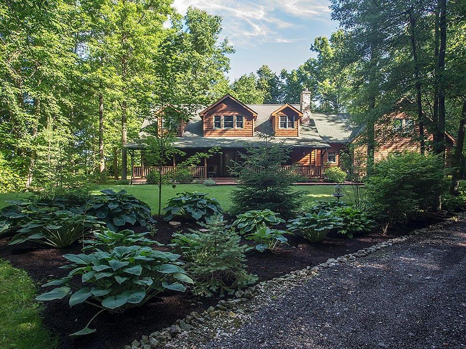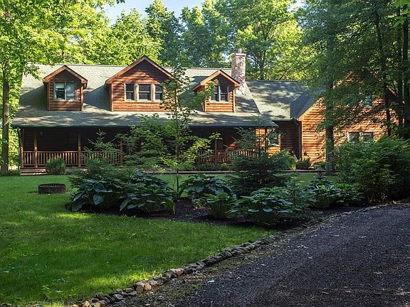Scenic Private wooded lot, provides setting for this Log style Rustic Home, featuring Spacious Owners suite with whirlpool tub and walk in closet, 2 Large bedrooms one with on suite, Great Room with Open Hearth Fire Place, Loft office or library space, finished basement with 1 piece slate pool table(remains).