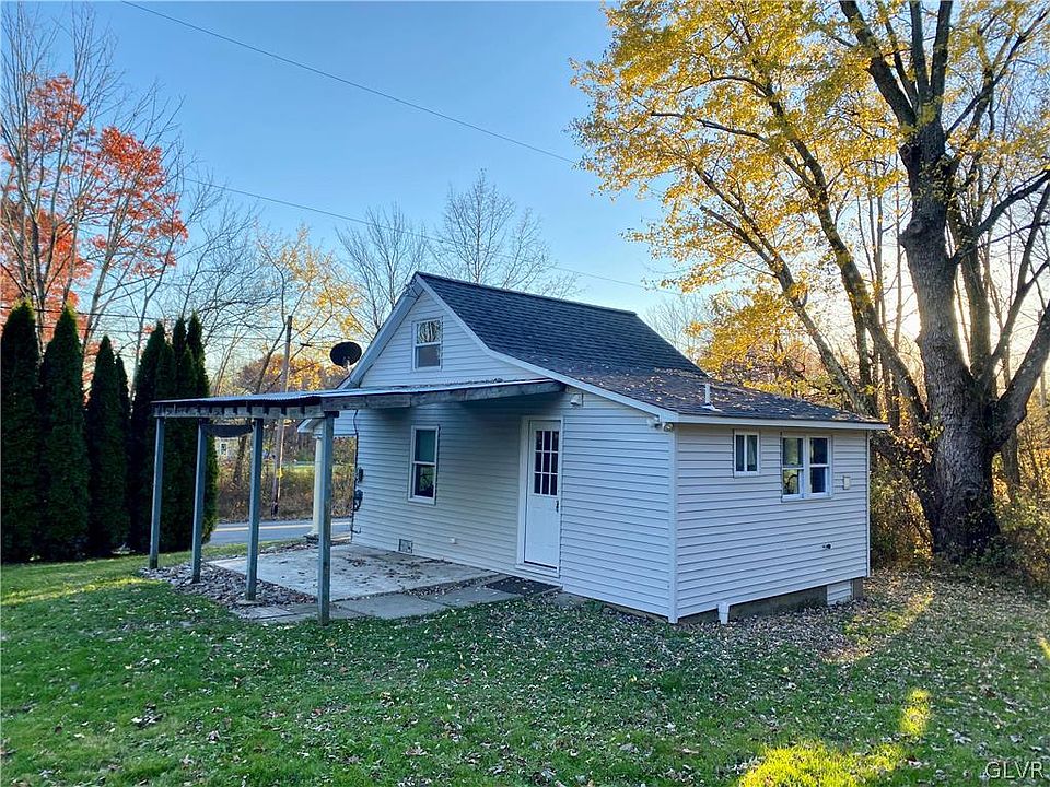 Welcome to your new primary residence or to your new country getaway. Nestled on a fabulous 2.71 acre partially wooded lot, this property has a HUGE amount of character! In 2015 this bungalow was gutted. Renovations include new septic, well, roof, windows, siding, loft, plumbing, electrical, hot water heater and insulation. Septic was designed for a 3 bedroom home so there is an opportunity to add on or build without replacement. Living room features exposed original beams. Upgrades include hickory cabinets, copper kitchen sink, granite counter, Travertine tile, custom bath with tiled shower, one of a kind stone sink/vanity, washer/dryer hook-up, pex piping, and 200 amp circuit breakers. Outdoors features a rocking chair covered front porch, separate covered patio, 2 sheds, lots of privacy and off-street parking for 2. This home could possibly be considered for an Air B & B with the location being between Blue Mountain and Camelback! A taste of the quiet life yet minutes to Rt 33.