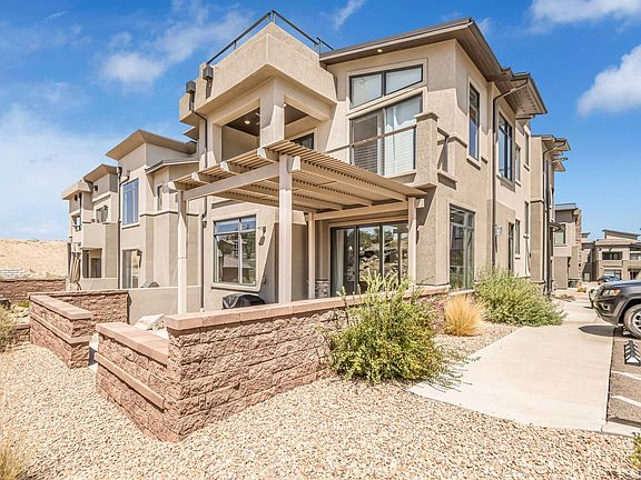 Come see and discover unparalleled luxury in this exquisite townhome, ideally situated within one of Redlands Mesa Golf Course’s premier developments. Just steps from world-class golfing, and scenic trails for walking, hiking, and biking, and a short drive from the vibrant downtown area, brimming with exceptional restaurants, shopping, and entertainment options. This sophisticated unit epitomizes comfortable and luxurious living. The main level greets you with an incredible open-concept kitchen, living, and dining area. Highlights include a spacious kitchen island with quartz countertops, upgraded stainless steel appliances, and a dedicated coffee/tea/wine station complete with a wine fridge. The living area features a stunning fireplace, while the expansive dining room offers ample space for gatherings. Large windows flood the space with natural light, and sliding glass doors open to a private covered patio equipped with an upgraded gas line for your grill, pizza oven, and more. Completing the main level are a versatile bonus room/office and a stylish half bath. Upstairs, the primary suite is a true retreat, featuring an additional room perfect for an exercise area or sitting room, both with breathtaking views. The suite also boasts a walk-in closet with built-in drawers and shelving, and a luxurious five-piece bathroom with a soaker tub and separate shower. Down the hall, you'll find two more spacious bedrooms, both with ensuite bathrooms, and a convenient, well equipped laundry room. Multiple balconies enhance the enjoyment of living in this exceptional home. Ascend to the large private rooftop patio to experience spectacular views in every direction. This space is already equipped for a hot tub! The 2-car garage is more than just a place to park your vehicles. It includes two remote-controlled lift stations capable of handling 800 pounds each, there is electrical installed for an EV charging station, and ample room for your bikes, kayaks, tools, and more. Schedule your private tour of this incredible home to discover the many upgrades and special amenities that make it truly unique. Seller paid 2-1 rate buydown with acceptable offer! Get in now with a lower payment! Welcome home!