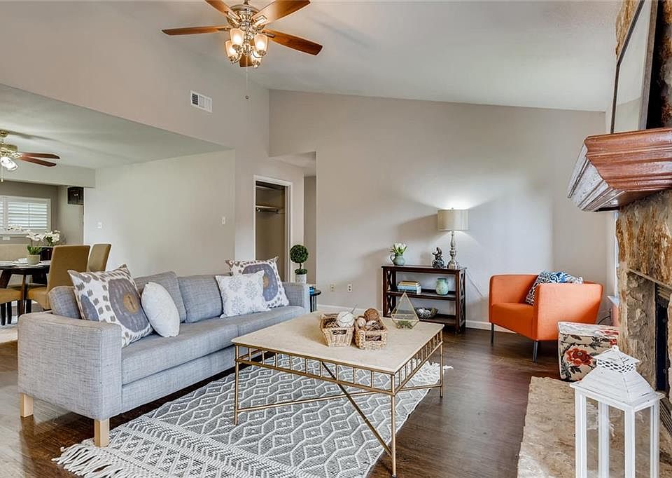 No HOA, One owner! Large CORNER LOT with huge beautiful trees. New Roof May 2019, New windows 2019, Water heater 2002, HVAC serviced and cleaned May 11. Updated and remodeled, stainless steel appliances, granite counters, brand new cabinets, fixtures and fence. Open floorplan with lots of natural light! High vaulted ceilings in the living room, spacious master bedroom with a walk in closet, no carpet.