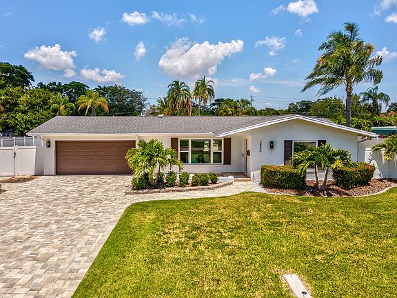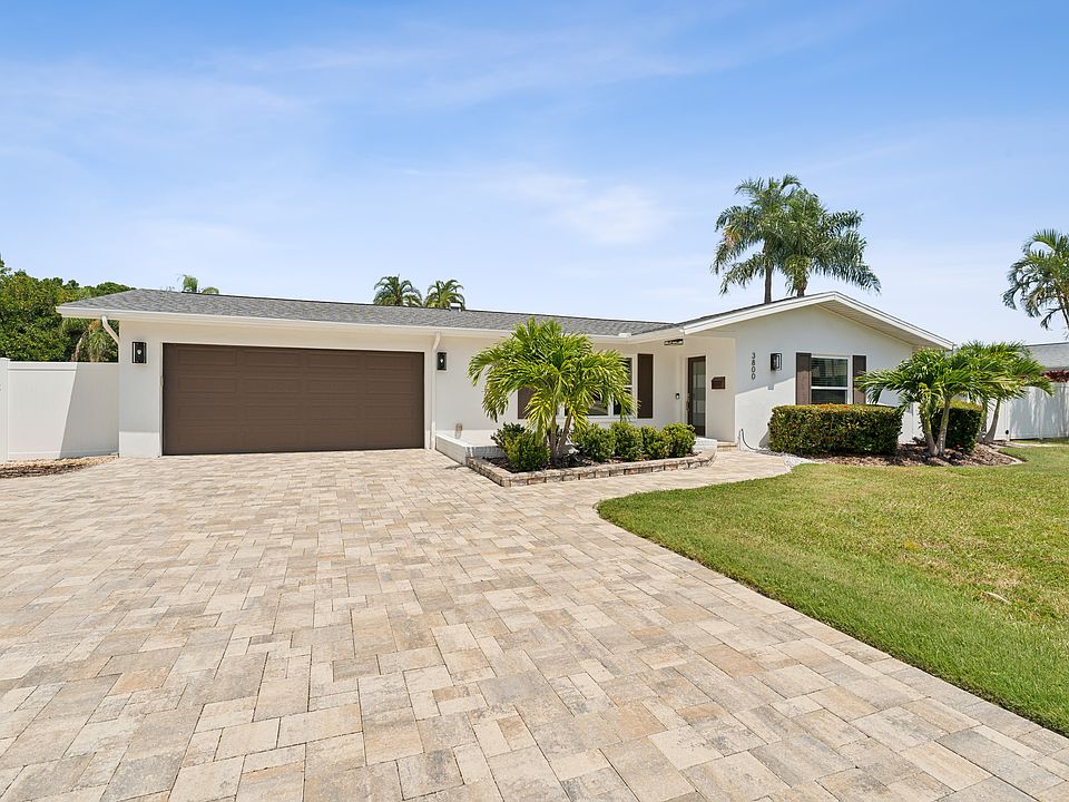 Elegance meets coastal retreat with this completely renovated idyllic 3-bedroom, 3-bathroom residence. Imagine days spent basking in the sun, sand, and surf, then returning to this meticulously designed home that has been fully updated. Upgrades include a new HVAC system - to keep cooling costs down - new pool equipment, wall to wall tile flooring and gorgeous lighting in each room. The Florida-inspired kitchen boasts an oversized island with breakfast bar seating, custom white cabinetry and all new appliances. Meticulous detail went into every corner, from the open-concept layout with beautiful tile flooring to the open dining/living room area overlooking the lush backyard and pool. The spacious primary bedroom feels like a spa retreat with soothing colors, large walk-in closets, and a phenomenal en-suite bathroom. The beauty doesn't stop at the front door - walk on through the dining and entertainment areas and you will find this incredible home nestled on a fenced double lot with artisan pavers, a sparkling pool, and a fire pit area; the perfect space for outdoor living and entertaining year round in your own tropical oasis. The oversized laundry room is discreet and functional, accommodating a side-by-side washer and dryer with an abundance of space left for storage. Step into the optional climate-controlled garage with epoxy floor, your haven for your automotive toys and workshop. This stunning home is surrounded by multi-million-dollar estates and located across the street from waterfront residences on Tampa Bay. The home is located minutes from downtown St. Pete which features top rated dining and nightlife and boasts eclectic shopping on Beach Drive. Museums and the Vinoy Golf Club are close by and you're a 15 minute drive to the Beaches. Close to I-275 and all bridges. Florida living doesn't get any better than this!