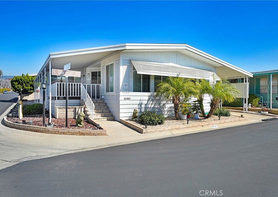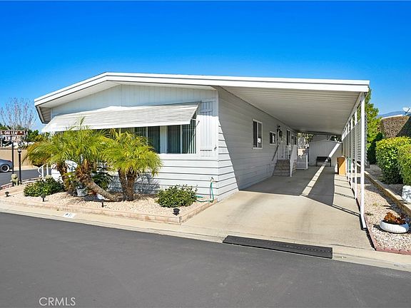 RARE CORNER LOT at Twin Oaks in La Verne (Senior Mobile Home Park 55+) 2 Bed, 2 Bath. Plenty of parking for all your guests. This Spacious home features a Living Room with Cathedral Ceilings and Dual Pane Windows that help conserve energy & allow lots of Natural Light into the home... The Dining Room has a Built-in China Cabinet. Separate Family Room with a gas FIREPLACE! Sliding door off the family room opens into Large Enclosed Lanai (Approx 8ft x 20ft buyer to verify for themselves) ... great for Craft Room, Office, or another Den area with Dual Pane Windows all around... ENJOY the beautiful west-facing VIEW! Nice Front Porch & Yard area alongside the home...Room to dream up your own design. Easy Maintenance Yard. A large Master Suite includes a Walk-in Closet, Master Bath featuring Soaking Tub as well as a Separate Shower. The Laundry Room is very large with lots of storage & a built-in desk area! Home complete with Earthquake Bracing. This home has been Well-Maintained. Twin Oaks is conveniently located near Public Transportation, Freeways, Shopping & Restaurants. Twin Oaks is a Wonderful Community place to retire!... Call for an Appointment. (The home is on Registration - New Spc Rent is $823.00)
