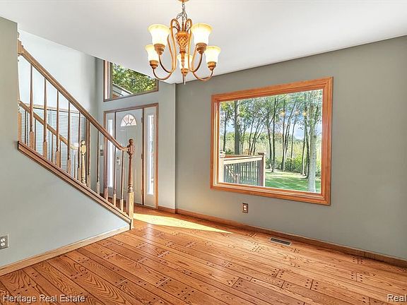 This gorgeous colonial home is nestled on a breathtaking 3.5 acres, but only minutes from downtown Brighton. Main floor of home offers a formal dining room plus an additional breakfast nook, a 3-seasons room w/ lots of windows and skylights, kitchen w/ granite counters, ceramic backsplash, and stainless appl's, a massive living room w/ ceramic surround gas fireplace, a 1/2 bath, first floor laundry, and a 25x35 attached 3 car garage. 2nd floor features 3 bedrooms, one full bath, an open loft, and a large master suite with gas fireplace, walk-in closet, master bath w/ jet tub, shower, dual sinks, linen closet, and ceramic tile. Finished basement offers an open floor plan with 8.5ft ceilings. This home also includes a reverse osmosis and radon mitigation systems, 2 story foyer, wood flooring thru-out, and a stunning covered wrap around porch with a built in gazebo. Irrigation system installed and driveway was just done. Property is immaculate with lots of wildlife and completely private!