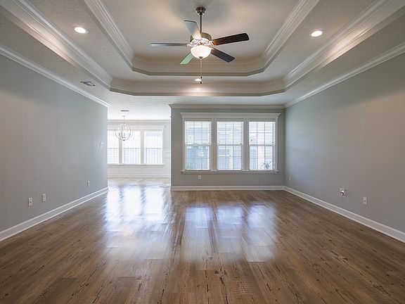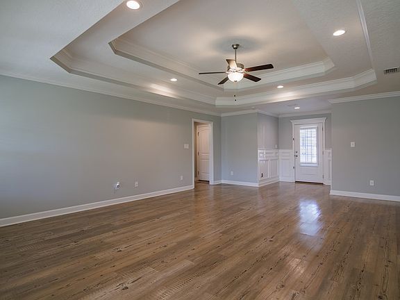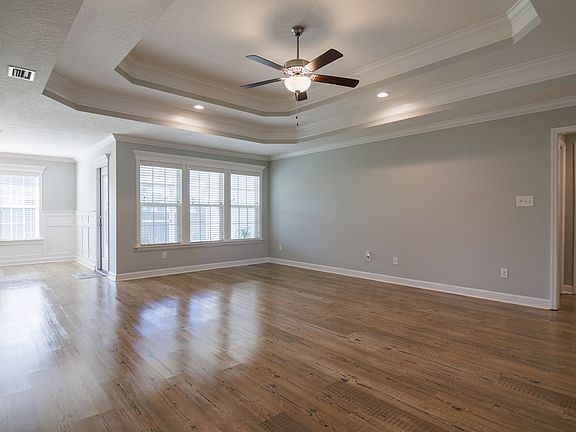 Four-bedroom, two-bath home in The Landing subdivision situated on a corner lot in Valdosta, Georgia. The kitchen features custom cabinets, granite countertops, under cabinet lighting, a tile backsplash, and stainless steel appliances including the refrigerator. The primary suite offers double vanities, his and her closets, a tiled shower, and a jetted soaking tub. Blinds are installed throughout with a plantation shutter on the front door. Luxury vinyl plank flooring runs through the main living areas, with carpet in the bedrooms and tile in the bathrooms. This beautiful HAHIRA home qualifies for 100 percent USDA financing for eligible buyers and is located in one of the area's most desirable neighborhoods. Measurements were taken by CubiCasa floor plan scan.