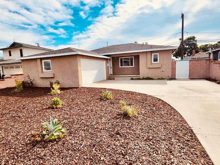 A beautifully designed single-story home with a direct access two-car garage attached, two gorgeous fireplaces, and low-maintenance front and back yards - making it a perfect home for entertaining. Great natural light throughout and upgraded features include a nice living room with a custom Travertine fireplace and French doors open into the large, inviting family/bonus room with an amazing white brick fireplace with a sliding glass door into the backyard. An elegant dining room opens into the appealing kitchen which now has custom countertops, all new self-closing cabinets and drawers, which leads to the separate laundry room and bathroom into the front bedroom. This charming home has three spacious bedrooms with new flooring, ceiling fans, mirrored closets, crown molding, retextured ceilings, custom paint, and lighting. Both bathrooms are fully upgraded with the full bath showcasing a dual-sink vanity and a shower-in-porcelain tub. The additional bathroom also has new cabinetry with a walk-in shower. The attached, two-car garage has direct access to the house and backyard with lots of storage spaces and built-in shelving that opens to the front patio and big driveway making it great for fun front yard activities, too. Surrounded by prestigious schools, close access to freeways, hospitals, and conveniently next to so many popular shops and delicious restaurants to enjoy, even an In-N-Out! Truly a very special home in this peacefully quiet neighborhood has an all-around desirable location!