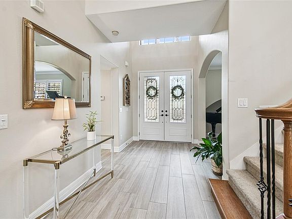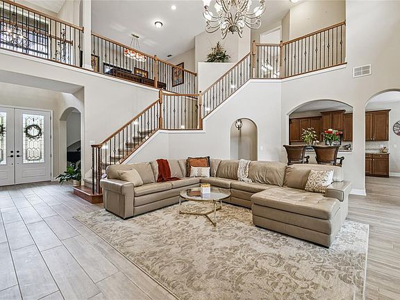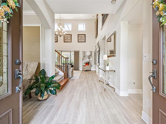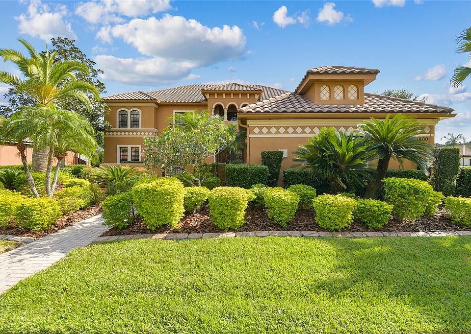 3800 Ivydale Ct is an exceptional former model home with a private pool and spa, showcasing the highly sought-after San Remo floor plan of 6 bedrooms, 4 full bathrooms, plus a spacious loft, and large family/media/office room including balcony access, and over 4,300 sq ft of elegantly upgraded living space. This Mediterranean-style residence blends timeless architecture with modern enhancements, offering comfort, functionality, and true resort-style living, with a barrel-tiled roof, custom courtyard entry and date palm, tropical landscaping. Set on a premium site, this property welcomes you with open spaces, 10–20 ft ceilings, elegant design details, such as crown molding and deep baseboards, featuring custom plantation shutters throughout, a warm, classic feel wraps around you. The open-concept layout offers seamless flow, upgraded ceramic plank wood style tile flooring, custom paint, upgraded designer lighting, and a beautiful staircase with wrought iron balusters. The main living area opens fully to the outdoors through expansive al fresco sliding glass doors, creating a serene indoor-outdoor living experience overlooking the tropical heated pool, spa, and brick paver deck with room for entertainment and privacy. The spacious first-floor primary suite offers a peaceful retreat with a walk through to a large bathroom including corner tub and walk-in shower, plus direct lanai access to sit poolside with your morning coffee. A separate guest bathroom is also located on this main level as well as an additional office or bedroom. The kitchen features double edge granite countertops, wood cabinets, stainless steel GE appliances, gas stove, and an eat-in nook overlooking the pool area, along with a large walk in pantry for exceptional storage. Upstairs are four additional bedrooms, 2 full bathrooms combining tub and shower, and a generous loft, large enough for a pool table that provides flexible living/recreation options. Up here you will also find a media/family room that opens to a private balcony with tranquil views of the pool and wooded backdrop. Home upgrades include new flooring, under-staircase fine spirits nook with wine refrigerator, screen enclosure refresh, custom closets, full-house audio/communication system, 6-zone irrigation system, and a 6-camera security system with ADT sensors. A 24kW whole-home generator (with (2) 200amp transfer switches) that adds peace of mind. The oversized 3-car garage features a Level 2 EV charger, painted epoxy flooring, and storage, including a large floored attic. A full laundry room with GE appliances, and convenient sink is located off the garage in the main home. Situated in one of Land O’ Lakes’ premier gated communities, this welcoming, elegant, and truly move-in-ready home offers classic comfort paired with modern upgrades. Schedule your private showing today.