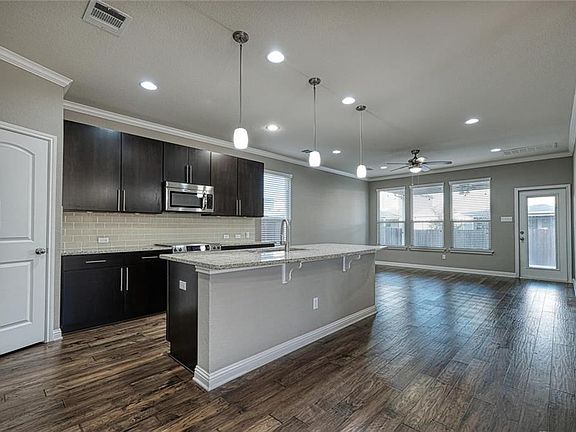 Gorgeous home on large corner lot features 3 bedrooms, 2.5 baths, with large upstairs loft and large kitchen open to family room. Tons of upgrades including engineered hardwood throughout the living areas and master bedroom, Nest security system, extra recessed lighting, ceiling fans in every bedroom and living space, extended covered patio. Community has lap pool, playground, dog stations. Easy access to Mopac, IH-35 and 45.