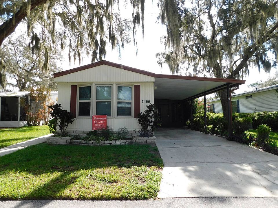 Charming 1986 Fleetwood is perfect for seasonal or year-round living! This adorable 2 bedroom, 1.5 bathroom, home offers 728 sq. ft. of comfortable living space with several upgrades. Enjoy the Florida lifestyle with an 11' x 16' screen room perfect for relaxing outdoors, and an 8' x 11' storage shed for all your extras. The home includes a washer inside and a dryer conveniently located in the outdoor shed, helping to save on cooling costs. Inside you will love the split floor plan: the guest bedroom features a private half bath, while the spacious master bedroom easily fits a king-size bed. The open kitchen boasts plenty of cabinets and flows nicely into the living space, making the home feel bright and welcoming. Recent updates and features include: brand new shingle roof (December 2024), new 40 gallon water heater (August 2023), HVAC system rebuilt internally within the past 2 years, fresh interior paint (2025), energy efficient windows, and upgraded flooring in the kitchen. This home is move-in ready and offers the perfect blend of comfort, functionality, and peace of mind. Don't miss your chance to own this charming home!