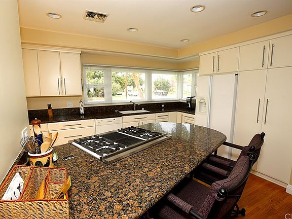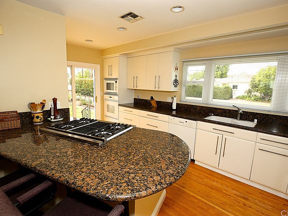 Beautiful, light and bright, corner-lot home with 3 bedrooms, including a master suite, and 2 bathrooms in over 2,100 square feet. This lovely home welcomes you as soon as you open the front door with its open layout between the spacious dining room with built-in bar area, window seat and remodeled kitchen. The modern kitchen features a wall of windows, sleek, white cabinetry and high end appliances including a Viking cooktop and Bosch dishwasher. The Viking cooktop sits on the granite covered peninsula, which can accommodate 3 bar stools and plenty of platters when you are entertaining. The kitchen also has a sliding door to the backyard which adds even more natural light and makes for a good flow for outdoor dining. The large living room, with fireplace, connects to the dining room. The master suite is located at the back of the home providing privacy. The master suite is ample sized with two closets and an extra area perfect for creating a relaxing retreat. The other two bedrooms are nicely sized with large closets and the hallway is filled with built-in storage. In this house, you will have plenty of room for your belongings. Next to the 2-car garage is a permitted hobby room. This room would make a perfect art studio, man cave, exercise room...use your imagination for all that it can become. The home has nice upgrades including central heat and air, replaced electrical panel and copper plumbing.