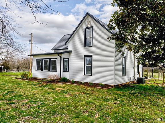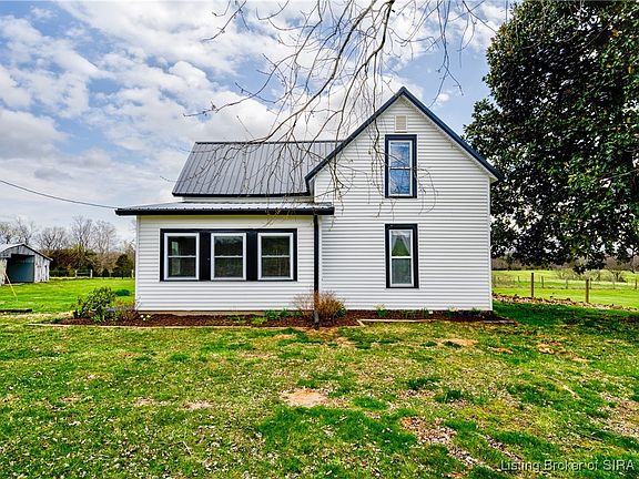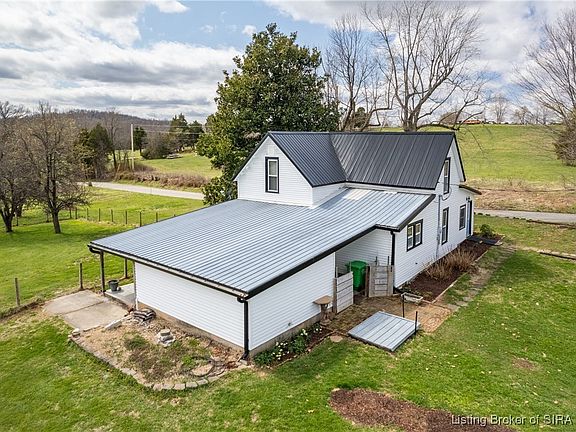 This charming, updated farmhouse is a true gem in the peaceful countryside of Corydon, IN. With an inviting open floor plan & abundant natural light, the home offers both comfort & functionality. The main bedroom is conveniently located on the first floor, complete with an adjoining full bath. A spacious laundry/mudroom sits near the back entrance for added convenience. Upstairs, you’ll find two additional bedrooms, a full bath, & ample storage. Just beyond the back door, breezeway leads to large, fenced-in backyard. The covered patio is the perfect spot to relax and take in the breathtaking views of the surrounding countryside. Beautifully maintained perennial gardens, along with mature maple & fruit trees, further enhance the landscape. The kitchen is well-equipped with stainless steel refrigerator, stove, & microwave, offering style & functionality. From the kitchen window, you’ll enjoy a picturesque view of the spacious, classic barn. The barn features a brand-new tack room, a horse stall with space for additional stalls, & ample hay storage. Attached is a run-in shed with a manger, which opens to a large paddock. Beyond that, 2 separately fenced fields outline the property, providing plenty of space for animals to roam. A second lg barn provides ample storage for tractors, mowers, campers & recreational equipment. One corner of the barn includes a secure tool room w/ built-in shelving for organization. This farmhouse is a rare find. Sq ft & rm sz approx. Home Sold As is.