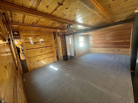 This 2 bedroom 1.5 bath cozy cabin inspired single wide mobile has pine tongue/groove interior walls throughout with great modern updates. Recent new roof and gutters (2 years old), new carpets and kitchen flooring. Open kitchen w/ island and tile countertops. Stainless steel appliances and granite composite sink. Primary suite with soaker tub/shower combo. Two decks freshly painted, large fully fenced back yard area with fire pit.