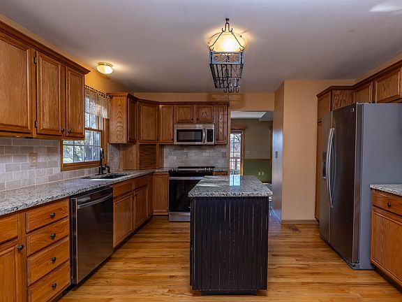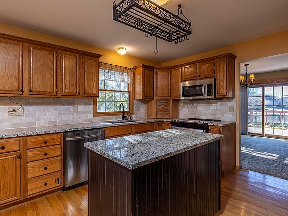 This home is an A+ for a family looking in Shawnee Heights, on a culdesac with a gorgeous pond being part of the property! It boasts 5 bedrooms (1 with no closet), 3.5 baths, a great room with cathedral ceilings, FP and a balcony. Dining area in great room plus eat in kitchen. 1st floor primary with ensuite and laundry in primary closet. Upstairs are 2 bedrooms with bath and downstairs you will find a finished walkout basement with 2 bedrooms, full bath and huge rec room with fireplace and 2nd laundry room. Basement was completely remodeled in November 2024. But even better, is the 2 level wrap around deck that gives you the most gorgeous view of the pond just behind you. Sit on your deck and enjoy the serene beauty of a well cared for pond, watch the geese and the 2 cranes that have lived on the pond for years! See the bald eagles in the trees and even do some fishing! Firepit and benches on the edge of the pond. You won't find this anywhere else. So make an appointment to view this amazing family home with school bus at your corner and just enjoy peace and serenity! Be sure to watch the Virtual Tour with drone pics of the pond!