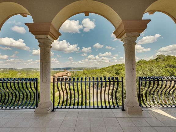 Custom Built Estate home nestled on a private One Acre lot in the Gated community of Canyons at Lake Travis. Step into this amazing home with Cantera stone columns and exterior windows framed in Cantera stone. As you enter the exquisite iron doors, experience the grandeur of detailed and amazing workmanship with a blend of Texas Hill Country charm. Spacious living area with stone flooring, cathedral beamed ceilings & two grand chandeliers. A striking stone fireplace adds warmth in this expansive living area. Large dining room with beamed ceilings provides sophisticated setting for hosting memorable dinners. European inspired gourmet kitchen is a chef's delight centered around a handcrafted Lacanche range, a one of a kind masterpiece with stone hood, integrated pot filler & griddle. Expansive center island with ample seating area ideal for casual gatherings. Breakfast area overlooks tree-lined front yard with water views. Oversized pantry equipped with additional refrigerator, storage and large counter space makes meal preparation effortless. Elevator provides convenient access to both floors and blends seamlessly into the home decor. Large office with access to backyard and primary bedroom provides private space for working remotely. Primary bedroom has beautiful stone fireplace and expansive windows. Built-in coffee bar featuring Miele coffee machine, mini refrigerator, sink and microwave. Secondary en-suite bedroom on main level opens to covered porch. Spacious Gameroom/ 4th Bedroom upstairs with wet bar opens to balcony. Covered deck with Cantera stone columns with views of Lake Travis is idyllic setting for relaxation. Large secondary bedroom upstairs with views ideal for guests. Exterior pool bath offers ideal setup for future pool. Experience the best of Texas Hill Country lifestyle. Residents enjoy hiking trails throughout the neighborhood. Convenient to Lakeway & Austin. Lake Travis ISD