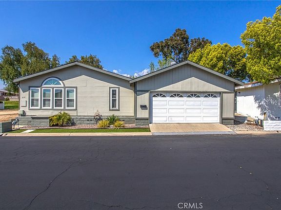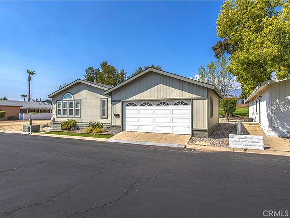 Welcome home to the beautiful 55+ community of Mountain Springs in Banning. This beautiful, manufactured home is one of the largest floor plans in the Mountain Springs community. Located on the Greenbelt, this home offers 3 bedrooms, 2.5 bathrooms, a formal living room and dining room, a spacious kitchen with tile counter tops and lots of cabinet space and island in the middle, a family room with wet bar, a spacious primary bedroom with ample closet space, large primary bathroom with garden tub, separate shower and 2 vanities, two nice sized guest bedrooms, guest bathroom has walk in shower, there is an indoor laundry room, a half bathroom for guests, enclosed patio making it great for entertaining, outdoor open patio with a wonderful view of the greenbelt, and a wider two car garage. The Mountain Springs Community amenities include beautiful greenbelt areas, solar heated pool, tennis courts, pickle ball courts, basketball, and a club room. Make an appointment today to see this turnkey home before it is too late.