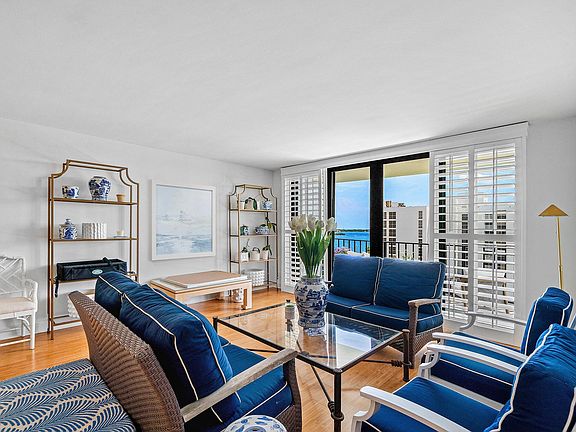 Welcome to the perfect pied a terre. Enjoy sensational views of the Intracoastal, Palm Beach and Atlantic Ocean. Sunny and bright residence with a south-facing exposure. Beautifully renovated 1BR/1.1BA condominium features new bamboo flooring, plantation shutters, lighting, bathrooms, and impact glass. New gourmet kitchen includes quality cabinetry, stainless steel appliances, and granite countertops. Spacious living and dining space opens to a covered balcony for outdoor living and entertaining. Portofino South is located along the prestigious S Flagler Dr walking path, just across the water from historic Mar-a-Lago. Full service, pet friendly building includes pool, parking, 24-hour doorman, and onsite manager. Short distance to the beach, downtown, Norton Museum, shops and restaurants.