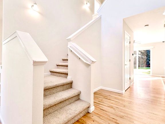The main level features gorgeous hardwood flooring leading into a bright, open-concept living area. The chef's kitchen boasts quartz countertops, stainless steel appliances, and a large dining space perfect for entertaining.