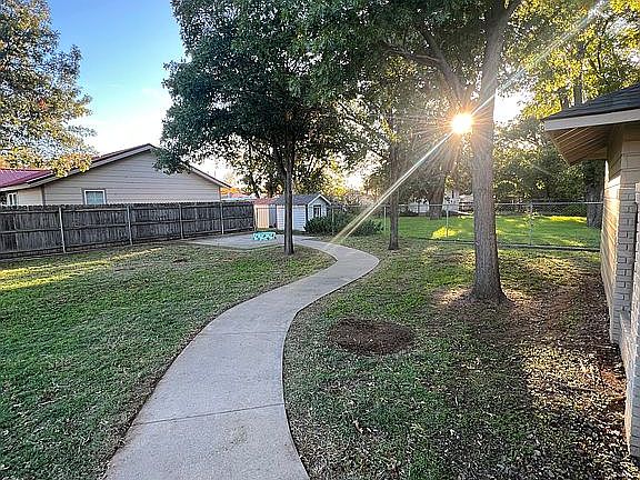 This 3 BD/2 BTH house has 2,155 sq ft of living space (per the tax district). The master suite is HUGE, with TWO walk-in closets and its own private bathroom with two vanity sinks. The other two bedrooms share the hall bath, with has a full tub/shower combo. The kitchen has an eat-bar, and there's a defined place for a dining table as well. A bar with its own sink is hidden behind one of the cabinets. The living room is sunken, large enough for a sectional couch and recliner, and has a wood burning fireplace. An office/library is located just off the living room as well. The home has lots of windows, all with custom plantation shutters. Crown molding and paneling round out this unique home. The backyard is large, and there is a separate patio too.A carport can fit two cars for parking. New roof, siding repaired/replaced, all new paint inside and outside and master shower remodeled in 2024.