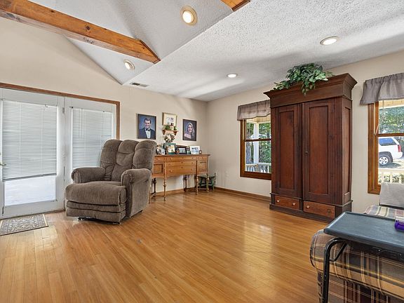 Enjoy the peaceful, country setting in this home sitting on 5 acres with PLENTY of room! 4 bedrooms, 2 full baths! This home offers a living room with wood beams, large kitchen with island, pantry, and bay window, as well as primary bedroom and full bath on the main level. In addition, the basement offers a great room for flex space, 3 bedrooms, a full bath, and laundry room. Daylight basement with interior and exterior entry with an attached 2 car garage. Covered front porch, large deck on the side of the house to access from the living room, and covered back patio! Enjoy the outdoors with a creek at the back of the property and room to roam in the wooded acreage! Conveniently located to recreation, including Joe Wheeler State Park, Elk River and Tennessee River for fishing! New roof in 2024!