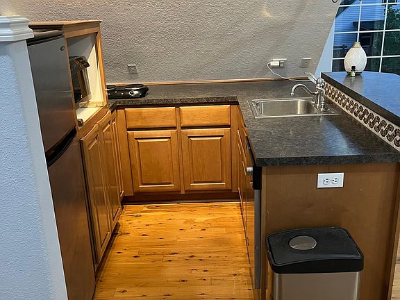 One bathroomSmall dishwasherPortable electric stovetopTwo small bedrooms