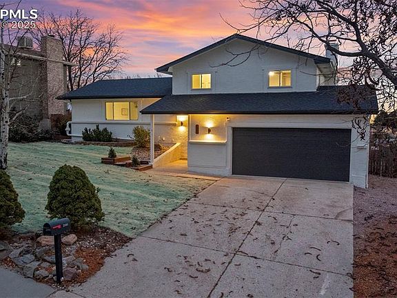 Some homes don’t just look beautiful, they draw you in from the first glance. The moment you arrive, the crisp stucco exterior, fresh landscaping set a calming tone. Stepping inside, the open flow of the 4 level layout makes it easy to imagine life unfolding here. Sunlight washes over the rooms, moving across the double sided waterfall quartz island and warming the inviting living spaces. The wood burning fireplace adds a touch of comfort that makes you want to settle right in. The kitchen blends style and ease with 40 inch cabinets, new stainless steel appliances, soft champagne bronze finishes, and the warm glow of a gold faucet that ties the space together. Upstairs you will find 3 bedrooms and 2 beautifully updated bathrooms. The primary suite feels like a peaceful retreat with dual shower heads and thoughtful finishes. Downstairs offers 2 additional bedrooms and a fully finished walkout basement with a spacious lounge area that opens directly to the brick patio. Modern upgrades like central A/C and a recently installed roof bring an added sense of peace of mind. Outside, the home becomes something truly unforgettable. The walkout deck opens to breathtaking views of Cheyenne Mountain, creating a backdrop that feels like its own piece of Colorado magic. Follow the multi level decks down and the yard transforms into an entertainer’s dream. A sixteen person fire pit surrounded by swinging benches invites long evenings under the open sky. The outdoor wet bar with flat top grill and sink turns gatherings into effortless celebrations. A six person hot tub offers a quiet place to unwind with mountain views in sight. Two sheds and RV parking add practicality to the beauty. All of this sits close to everything, including elementary and high school, neighborhood parks, walking trails, shopping, theaters, and the growing and sought after Powers corridor. It is easy to imagine this being the start of a new chapter you have been waiting for.