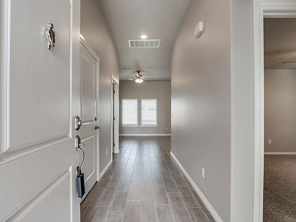 Your primary suite offers a peaceful retreat with a walk-in closet and a stylish dual vanity bath. Out back, enjoy a covered patio and a fully fenced yard, perfect for relaxing evenings or playtime with pets. Plus, you'll love the storm shelter, tankless water heater, and smart sprinkler system for easy, energy-efficient living.