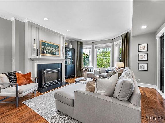 Welcome to this beautiful, sun-drenched 3-bedroom, 2-bathroom condo featuring an open floor plan and elegant finishes throughout. From the moment you step inside, you'll be captivated by the gorgeous hardwood floors, custom crown molding, and the abundant natural light flowing through every room. The spacious living and dining area boasts a cozy built-in fireplace, seamlessly opening to a bright, versatile multi-purpose room perfect for an office, guest room, playroom, or additional dining space. The recently renovated kitchen is a chef's dream, complete with stunning quartz countertops, custom cabinetry, and a stylish backsplash. Step outside to your own expansive shared deck, ideal for summer BBQs and outdoor gatherings. The layout of the home is both functional and inviting, with a separate rear entrance that makes storing coats, shoes, and everyday items a breeze without cluttering the front of the home. Located in one of the most desirable neighborhoods, this condo is just a 5-minute walk to Whole Foods, Broadway & Halsted, and the Southport Corridor, offering endless dining, shopping, and entertainment options. You're also just a short stroll to the lakefront, golf course, tennis courts, and the Lakeshore bike path leading to Montrose Beach. Additional highlights include off-street parking, a heated bike room, and easy access to public transportation with nearby Addison and Sheridan Red Line stops, as well as express bus routes to Michigan Ave and the Loop. You don't want to miss this!
