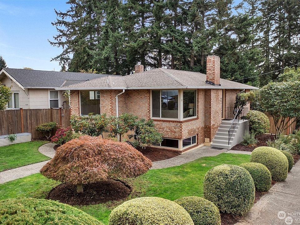 Nicely remodeled 3 bedroom 2 bath mid century modern in the coveted Bryant neighborhood. Spacious remodeled kitchen with granite slab counter top & stainless steel appliances (no storage problem here; tons of cabinets). Light & open with big picture windows. Formal dining room. Spacious rec-room in the lower level with fireplace is the perfect place to watch the big game! Lower level has 2nd kitchen - potential ADU. Fenced backyard with patio (great indoor - outdoor use of spaces with this home). Most systems updated. Attached garage. Walking distance to shops, schools, cafes & parks. Only minutes to U W, Childrens, downtown, Amazon, Burke-Gilman & 520. #1 sought after school cluster