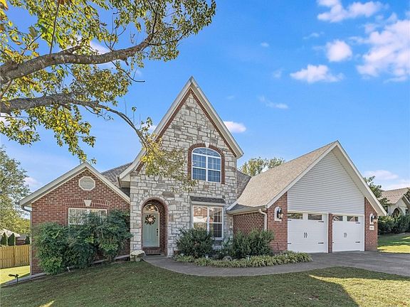 This 4-bedroom, 2-bath home has been extensively remodeled this year and is ready for a new owner looking for charm, space and a like-new home in an established neighborhood. Amenities are many: completely remodeled kitchen in April 2025, new roof and some siding in July 2025, new furnace, air handler and duct replacement and cleaning in April 2025, mostly-new fence in August 2025, new insulated garage doors in October 2025, new tile in all tiled areas in August 2025. Stainless kitchen appliances are new and convey with home. Great room with gas-log fireplace has lots of natural lighting, as does the formal dining room. The upstairs bonus room can be whatever you want because it is huge: a second living area, a media room, a workout room, a home office or all of the above! Home is near Tyson headquarters, Walmart neighborhood market, and I-49, yet tucked into a quiet cul-de-sac. The large deck is composite, and the backyard comes with a storage shed, strawberry patch and a mulberry tree. Home warranty provided.