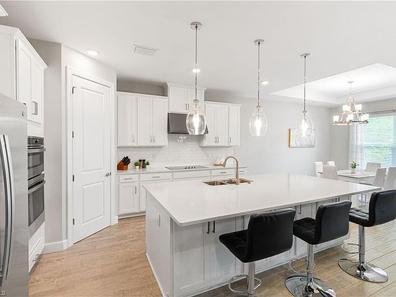 Welcome to your dream home, a stylish, gently lived in gem in the heart of the desirable Burnt Store corridor! This stunning turnkey 3 bedroom, 2 bathroom residence offers 1,984 sq. ft. of thoughtfully designed living space, blending elegance and comfort in every detail. Nestled in a peaceful neighborhood just minutes from Matlacha, Pine Island, Burnt Store Marina, and an array of restaurants and shopping plazas, this home provides the perfect blend of luxury, convenience, and coastal charm. As you step inside, you’ll be greeted by an impressive oversized foyer that sets the tone for the sophistication within. The expansive great room draws you in with its open design, while wide sliding glass doors lead to a large screened lanai—ideal for entertaining or enjoying serene evenings outdoors. The gourmet kitchen is a true showpiece, boasting sleek stainless steel appliances, 42" upper cabinets, a spacious pantry, and a quartz-topped island that seamlessly connects to the living area. Your private retreat awaits in the luxurious primary suite, featuring a spa-like walk-in glass shower, dual sinks, and a spacious walk-in closet. Throughout the home, refined details—porcelain tile, tray ceilings, 8' tall doors, crown moldings, and designer lighting—enhance the modern elegance. A double-car garage offers ample room for vehicles and storage, while seamless gutters add practicality and peace of mind, making this home as functional as it is beautiful. With its prime location, exquisite design, and exceptional features, this home is a rare opportunity to elevate your lifestyle. Don’t miss your chance to make it yours! All information is deemed reliable but not guaranteed.