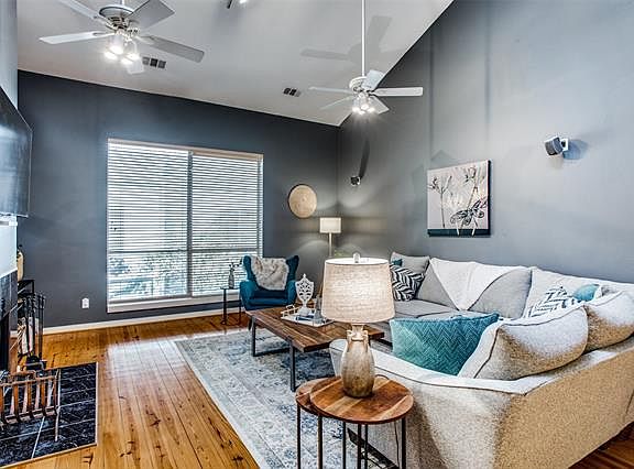 Beautiful, gated contemporary townhouse, minutes from downtown Dallas and to fantastic restaurants and entertainment options in Lower Greenville, Uptown, Uptown East, the Arts District and Deep Ellum. Open floor plan, plenty of windows for natural light, vaulted ceilings and a fenced yard area with wood deck. Expansive living room opens to the dining and kitchen space, wonderful for entertaining! Fantastic split bedroom floorpan is ideal for roommates or extra privacy with guests. 2 beds and bath on 1st floor. 3rd floor Master Suite with large walk in closet, master bath and private study. Built-in Sound System and Security System with Cameras! Attached 2 car garage. Enjoy the ultimate urban lifestyle!