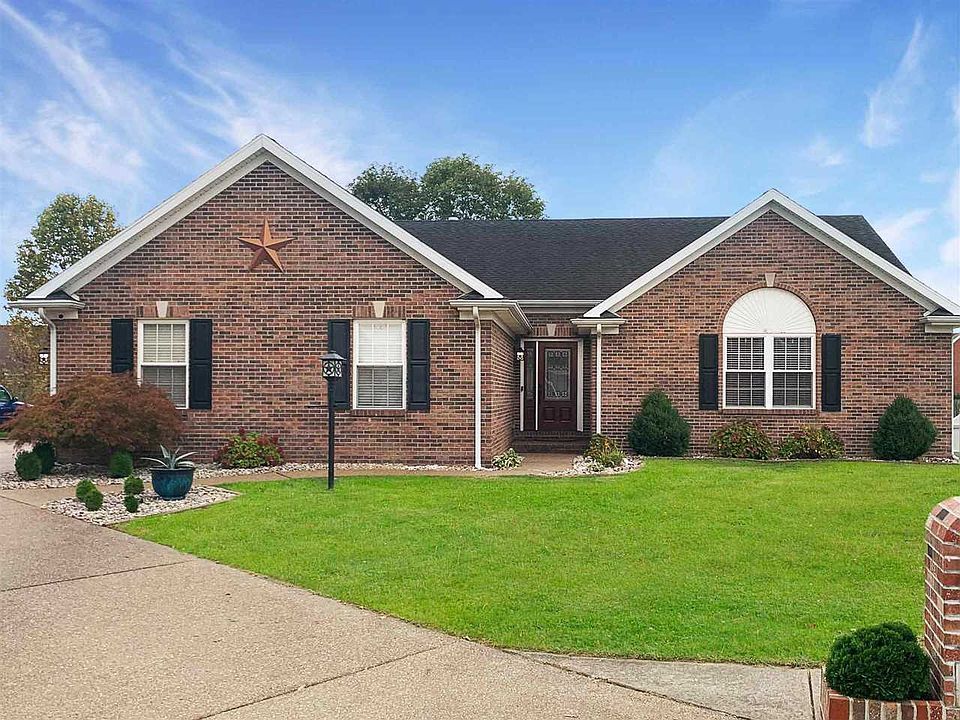 Great curb appeal surrounds this beautiful all-brick ranch, situated on a cul-de-sac in Keystone Subdivision. The beautiful front door and foyer greet you as you enter the home, offering an open floor-plan and an abundance of natural light. The spacious great room, complete with cathedral ceiling and gas fireplace, is perfect for entertaining, and is open to the the fully applianced eat-in kitchen, which offers a breakfast bar, ample cabinet and counter space as well as a pantry closet. The master suite includes a walk-in closet and private ensuite bath. The additional two bedrooms are nicely sized and offer lots of natural light. A separate room off of the great room would make a great in-home office, den or craft room. To complete this home, there is a three car side load garage. New HVAC in 2020, per seller. Nest Safety Equipment included in the sale (1 outdoor camera, 1 doorbell camera, 1 digital thermostat). Seller is providing a one year 2-10 Home Warranty.