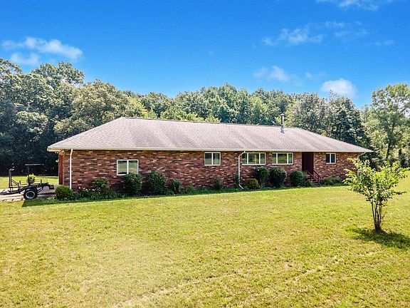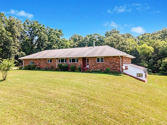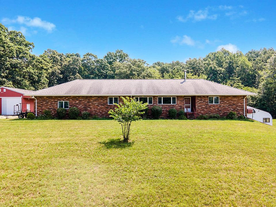 You'll have immediate occupancy when you purchase this large brick ranch situated on 10 acres with a pole barn. This home has a split floor plan with two bedrooms on one end and the primary separated from the other bedrooms. Two of the bedrooms have walk-in closets and the laundry is on the first floor as you enter from the 2.5 car garage. There is a finished basement with an attached greenhouse, perfect for growing your food year round. This home sits far off the road and is private and full of wildlife for you to enjoy. The pole barn has concrete floor, electric and includes 220 for welding. This property is perfect for a gardener, hunter or someone who wants to be away from it all. Add fresh paint and new flooring and the house will be like new!