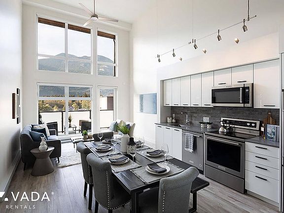 The Lauren is a newer building in Downtown Squamish, located on a quiet residential street, steps away from everything you need on a daily basis - coffee shops, grocery stores, boutique stores, restaurants and more! This two bedroom penthouse level loft has 17ft ceilings and a bright open floor plan! Enjoy breathtaking views of The Chief, Shannon Falls, and Howe Sound from the balcony, or the shared rooftop patio down the hall. Contact VADA Property Management today to schedule a viewing at this two bedroom loft rental at The Lauren.