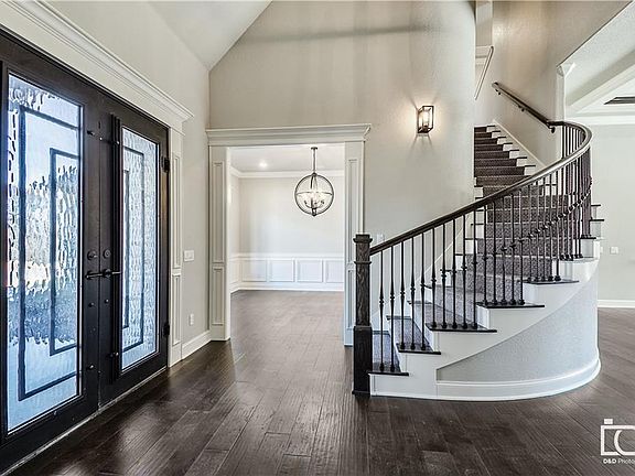 Contemporary elegance & thoughtful design in Copper Ridge; new construction by Capstone Design Build. This stunning estate is nestled on a large 1.05 acre lot with gorgeous wooded views. Sizable study just off the entry features built-in shelving & storage; French door entry. Formal dining boasts wainscoting, natural light & stylish fixture. Pass the custom staircase to find a cozy stacked stone fireplace flanked by built-ins, coffered ceiling with dark inlay, and large picture window. The Chef's kitchen displays a gas cook-top with pot filler, stainless appliances, custom cabinetry & island topped with granite, dual sinks, double oven, and walk-in pantry. Large buffet with additional storage in the breakfast nook; outdoor access. Master bedroom is simply stunning; tray ceiling with shiplap inlay, streaming natural light, and outdoor access. Relax in the spa-like master bath; luxurious garden tub, dual vanities with makeup area & giant walk-in closet. Conveniently located near I-49 & 8th street exit!!
