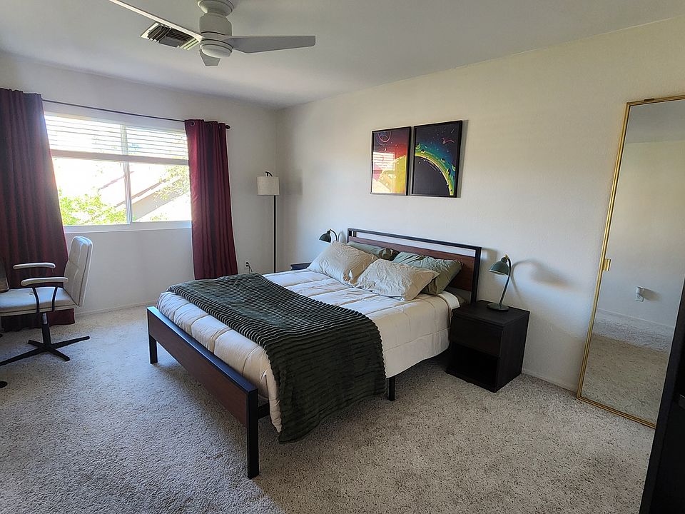 Renting a private fully furnished and spacious bedroom (12' x 15') in a quiet neighborhood just one mile from top Valley trails and minutes from the I-10 for easy commutes. The room's bathroom is shared with one other long-term tenant, and another half bath is accessible for guests.